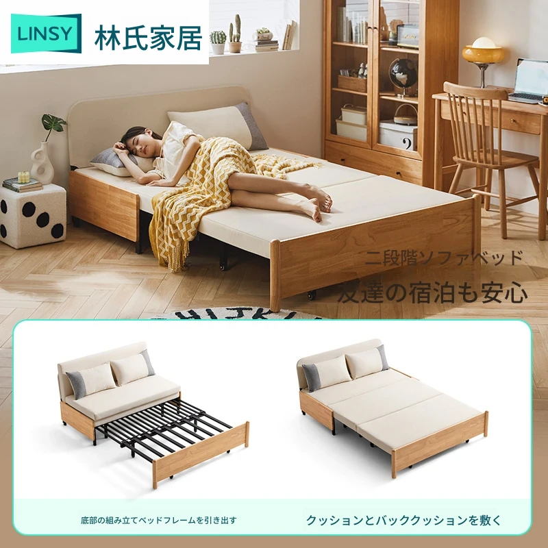 林氏家具のコンパクトソファベッド|折りたたみ式・多機能デザイン|トレンドの天然木使用|2024年新作 G076|省スペースでスタイリッシュに!