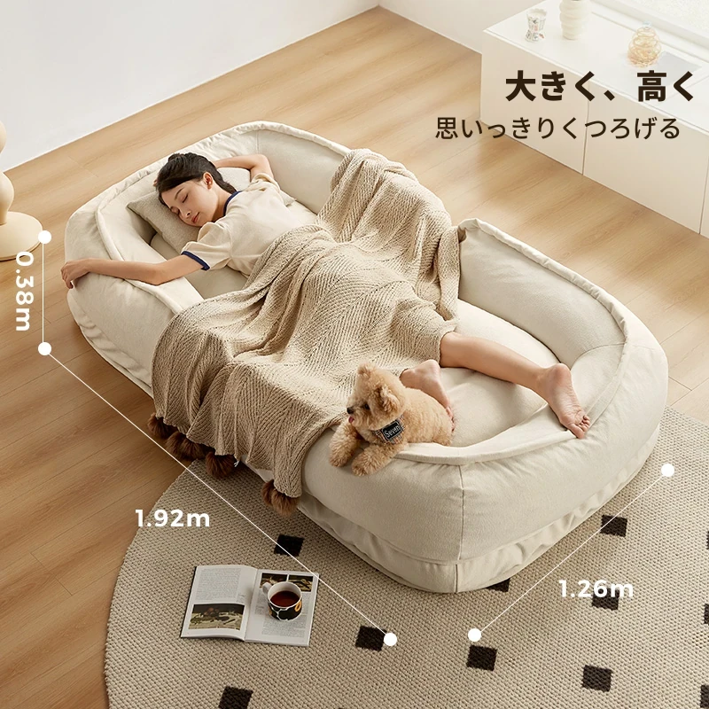 毛虫ソファ|リラックスできる一人用寝椅子|寝転びやすい!おしゃれなクリーム色|ベッドルームやバルコニーに最適なくつろぎ空間を実現する小さなソファ