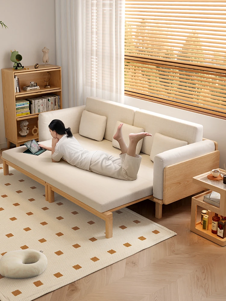 新型2024年モデル!実木製ソファベッド 小型住宅向け 多機能・伸縮可能 客間にぴったりな引き出し式ソファ 折りたたみ二用途デザイン!おしゃれな空間を演出します。