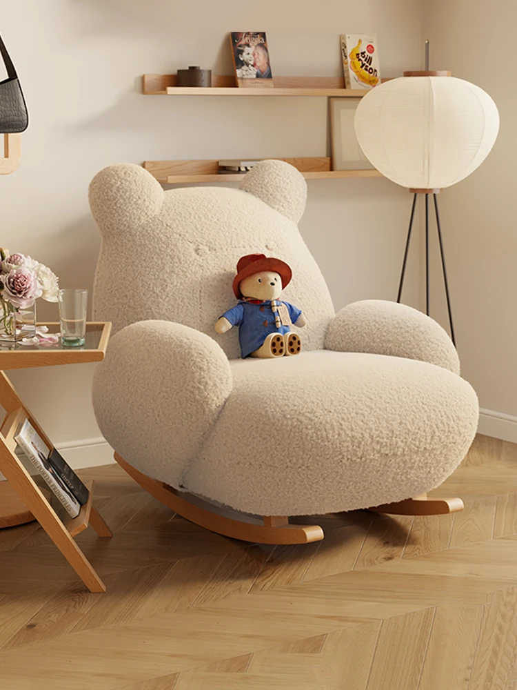 尚馨阁のクリーミー風デザインロッキングチェア - おしゃれなリビングルームにぴったり!贅沢なリラックス体験を提供する一人用ソファ。バルコニーや室内でくつろぎのひとときをお楽しみください。