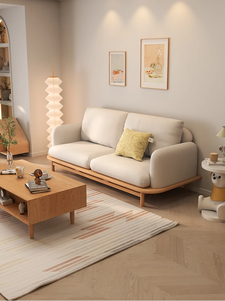 北欧スタイルの無垢材ソファセット|シンプルでモダンなデザイン|小型住宅に最適|冬も夏も使える布張り|自然な木の温もりを感じるリビングソファ✨