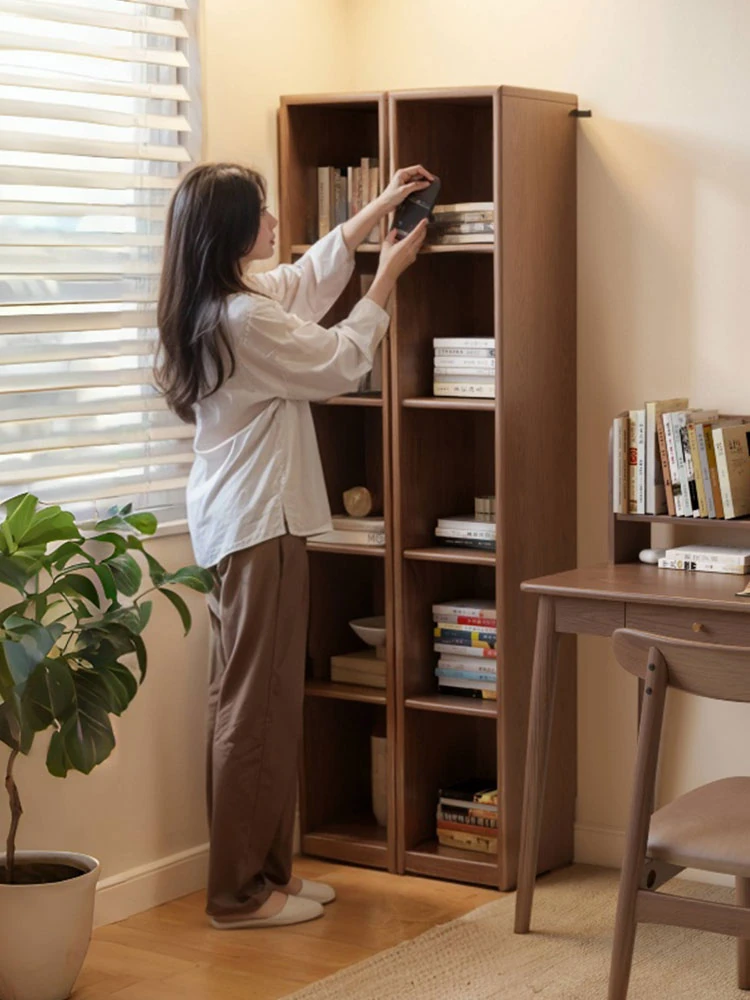 天然木材使用!狭いスペースにぴったりのスタイリッシュなフロア書棚。家庭用ディスプレイキャビネット、隙間収納や収納に最適な高いスリムキャビネット。壁にもぴったりフィット!クールな小型キャビネット。