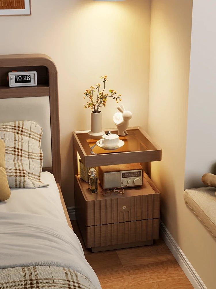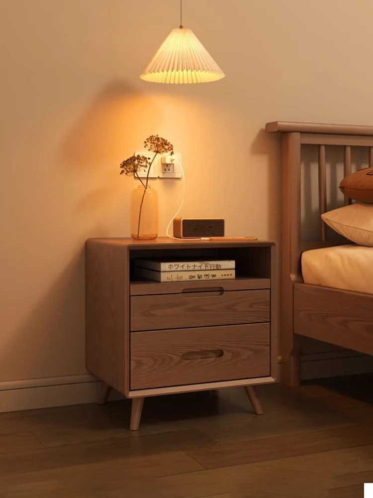高級感溢れる無垢材ナイトテーブル - スタイリッシュなミニ収納、シンプルで現代的なデザインのベッドサイドキャビネット!お部屋を美しく整理する理想的なアイテム、快適な睡眠空間を演出します。