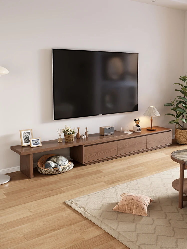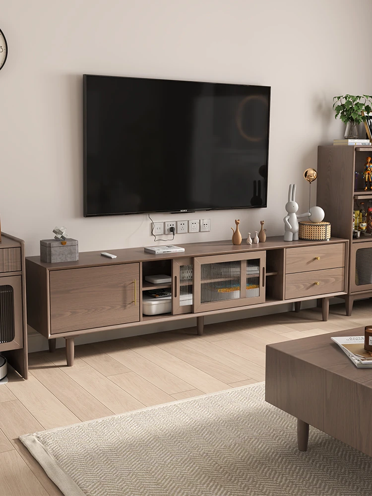 現代風シンプルな無垢材テレビキャビネット|北欧スタイルのリビングに最適!小スペースにぴったりな収納一体型のコーヒーテーブル|おしゃれで機能的な家庭用テレビ棚!
