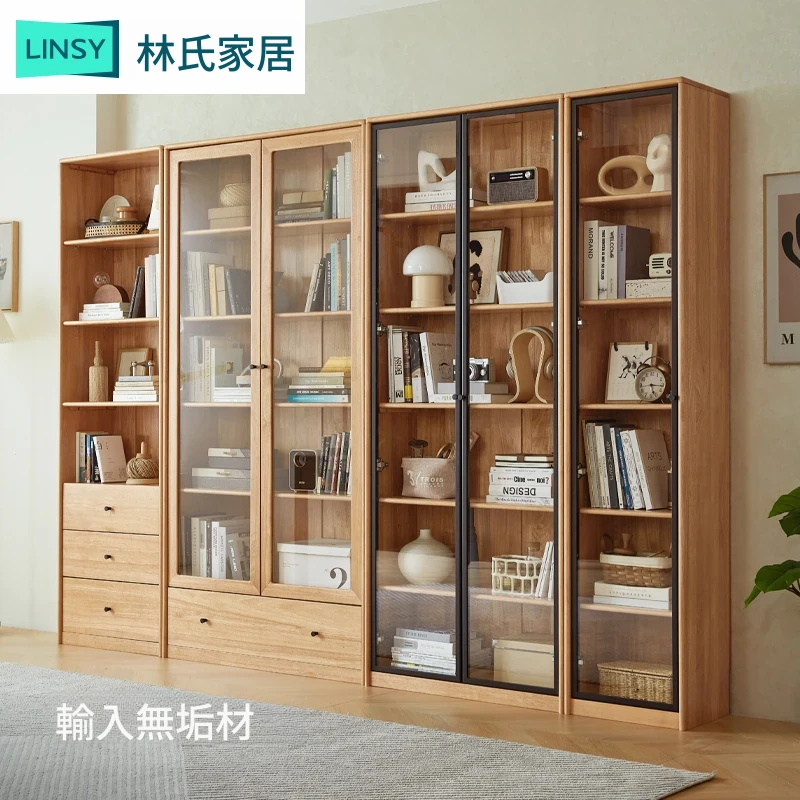 林氏木業の北欧スタイル!実木製の全面書棚、ガラス扉付きのデザインでおしゃれなリビングにもぴったり。家庭用書斎としても最適なPK1Xモデル、収納力抜群であなたの本を美しく飾ります!