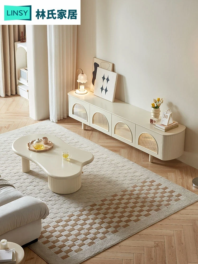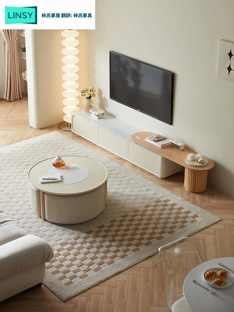 リンシー家居 モダンシンプルな岩板テレビ台 リビングにぴったりのクリーム色の侘び寂びスタイル収納キャビネット 林氏木業 NU3L