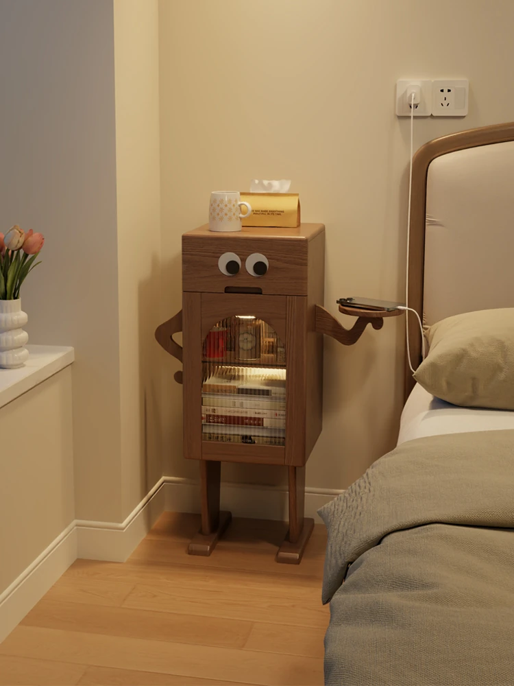 ロボットナイトテーブル - ライト付き!天然木製のソファサイドテーブル、リビングにぴったりの収納家具。創造的なデザインで子供部屋にも最適なベッドサイドキャビネット!収納力も抜群です!