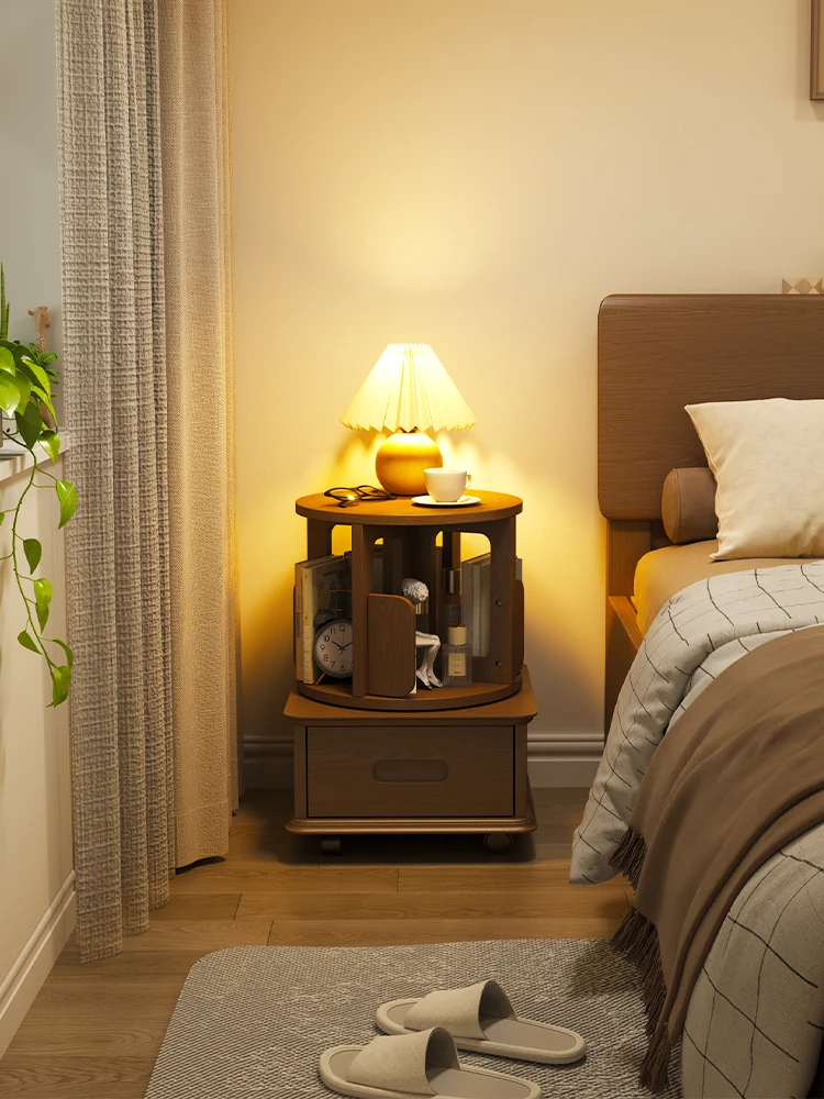 尚馨阁2024新作!回転式高級感あふれる無垢材ナイトテーブル。寝室を優雅に演出する、収納力抜群のベッドサイドキャビネット!