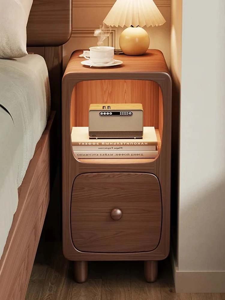 高級感あふれるシンプルな無垢材ベッドサイドキャビネット - スリムで収納力抜群!寝室にぴったりのコンパクトなスタイリッシュライトラグジュアリー収納棚。