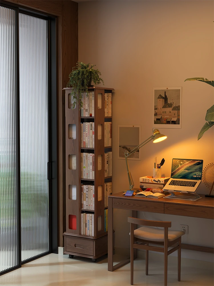 360度回転する子供用書棚|リビングに最適な天然木製フロア書棚|トレンドの移動式収納ラック|おしゃれで便利な本の整理整頓!