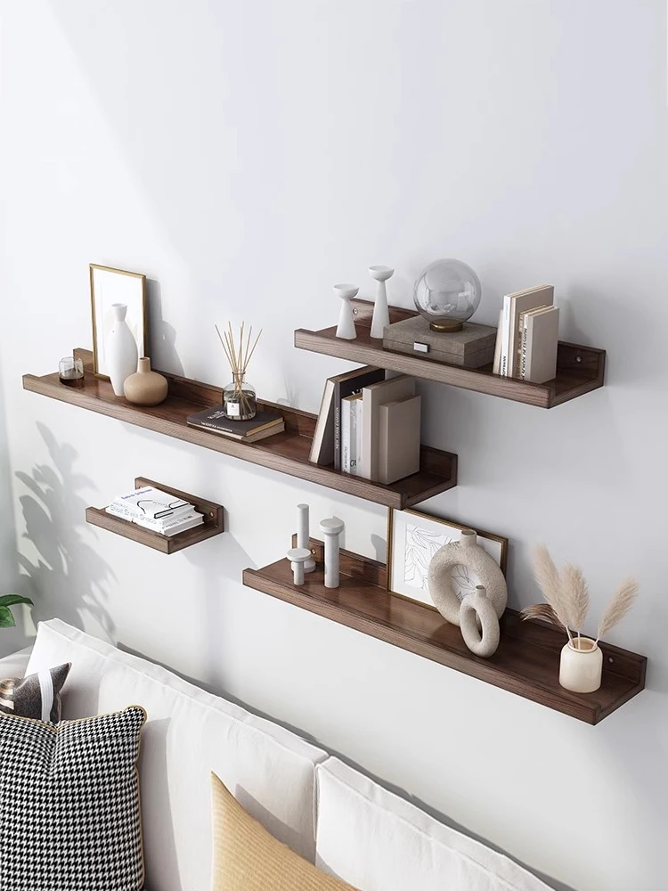 穴あけ不要!頑丈な天然木製の一字型壁掛けシェルフ|リビングや寝室に最適な収納スペースを提供する、おしゃれで機能的なテレビ壁面棚!