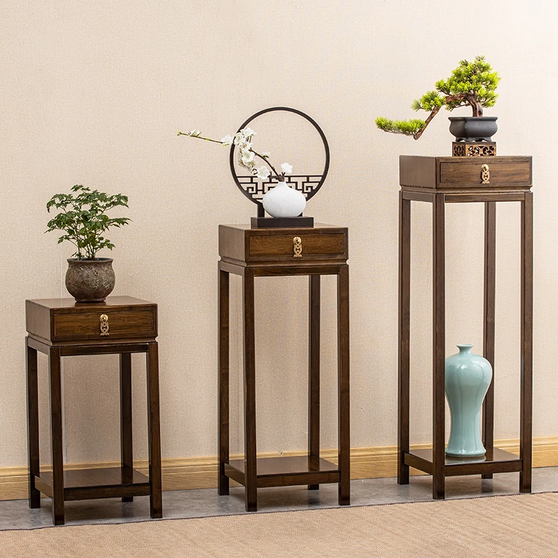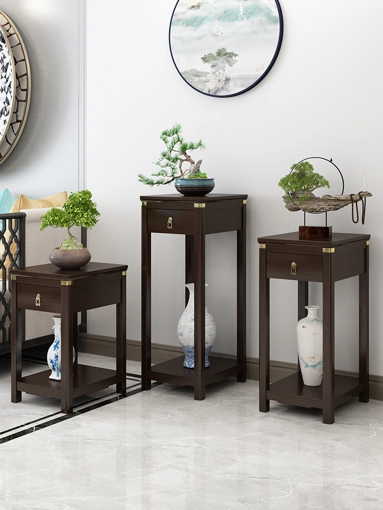 新中式スタイルのフラワースタンド リビングルーム用の落地式花台 天然木製のインドアプランターラック 多用途のおしゃれな花台 お部屋を彩る素敵なインテリアアイテム!