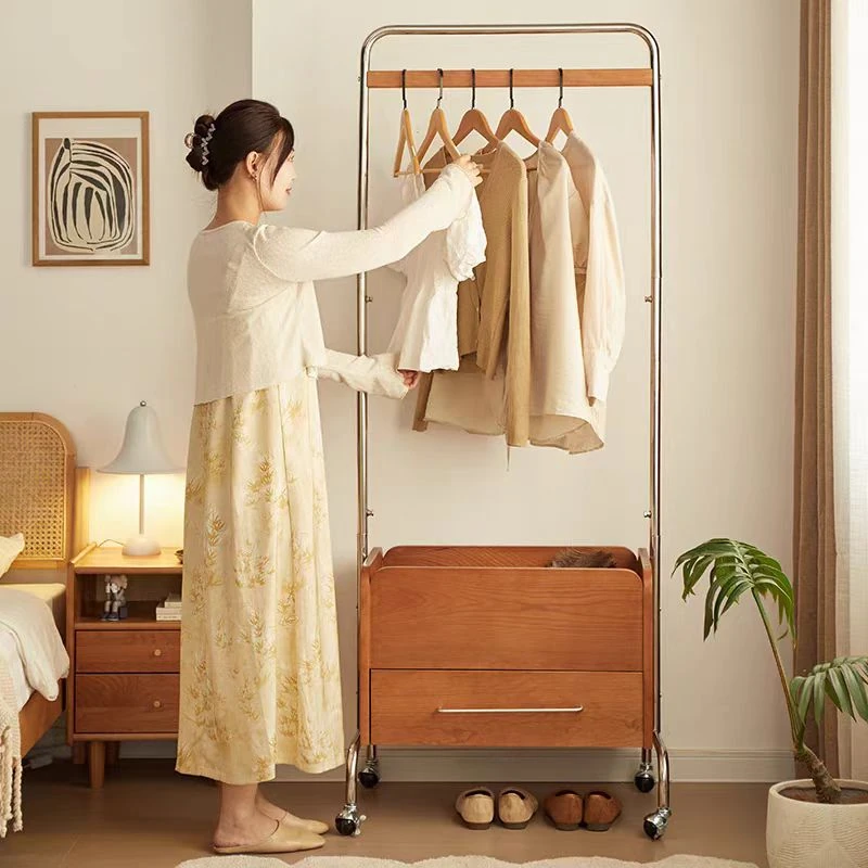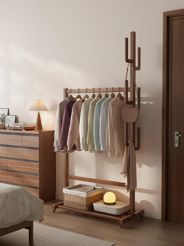 馨佰利の中世風ハンガーラック - おしゃれでコンパクト、移動も簡単な実木製!寝室やリビングにぴったりの収納スペースを提供します。おしゃれなインテリアを演出し、スッキリ整理整頓!