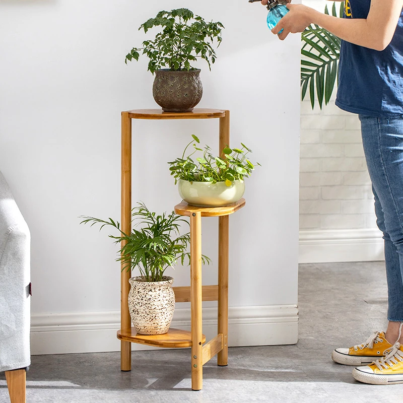 新中式デザインの実木竹製フラワースタンド - リビングにぴったりのスタイリッシュな置物ラック!シンプルでエレガントな花台、花瓶や観葉植物を美しくディスプレイ。お部屋を華やかに彩る必見アイテム!