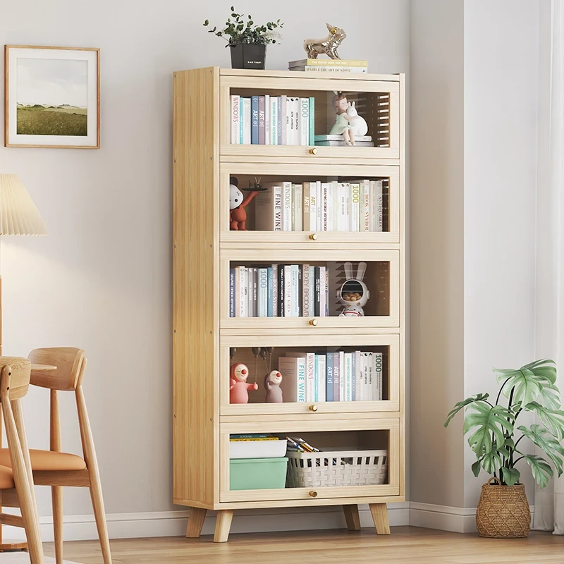 天然木材製 作のスタイリッシュな本棚!リビングにぴったりのフロア収納キャビネット。防塵設計で大切な本を守り、多層収納で整理整頓も簡単。扉付きでスッキリ!シンプルで便利な書棚をどうぞ。