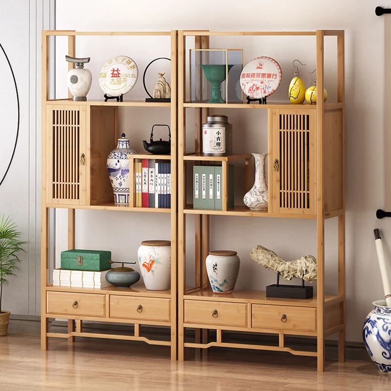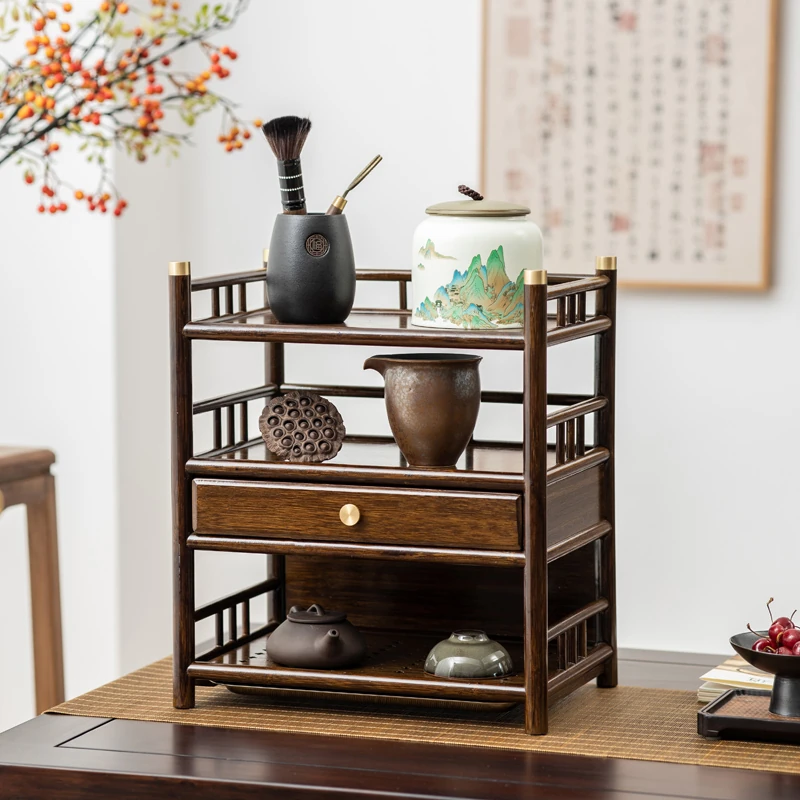 デスクトップ用小型博古架 - おしゃれな茶道具収納棚、茶葉もスッキリ整理!実木製の中華スタイルディスプレイキャビネット。美しさと機能性を兼ね備えたアイテムで、お茶の時間をもっと楽しもう!