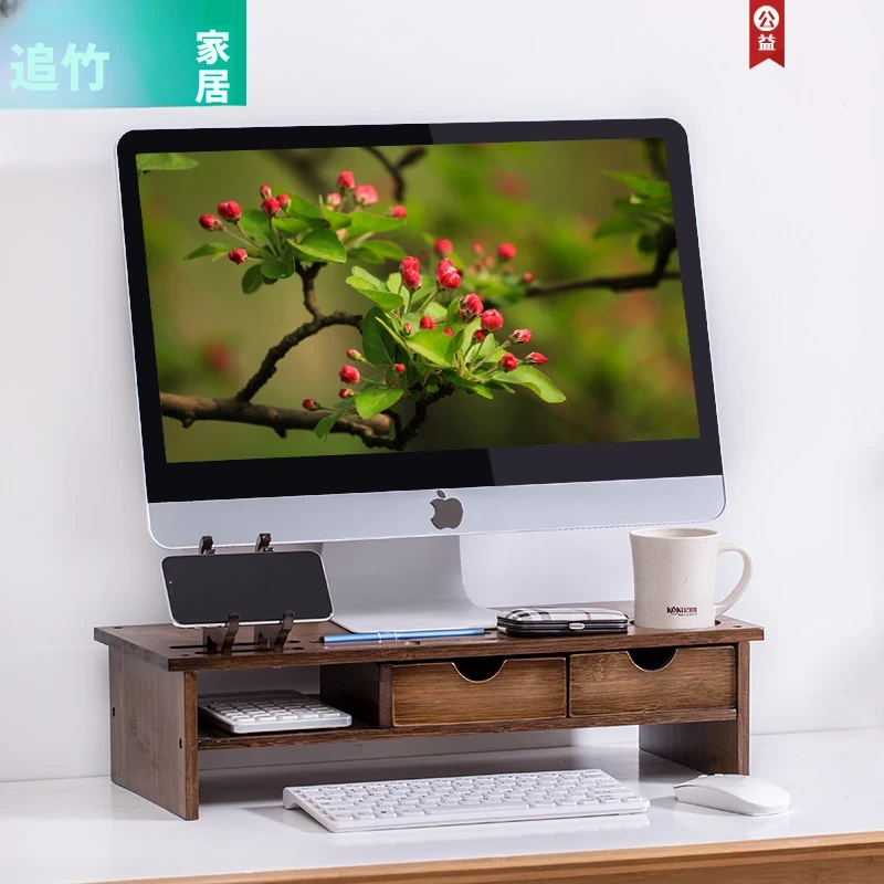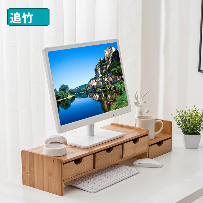 デスクトップパソコン用 木製ネックサポート付きデスク収納 快適な作業環境を実現!