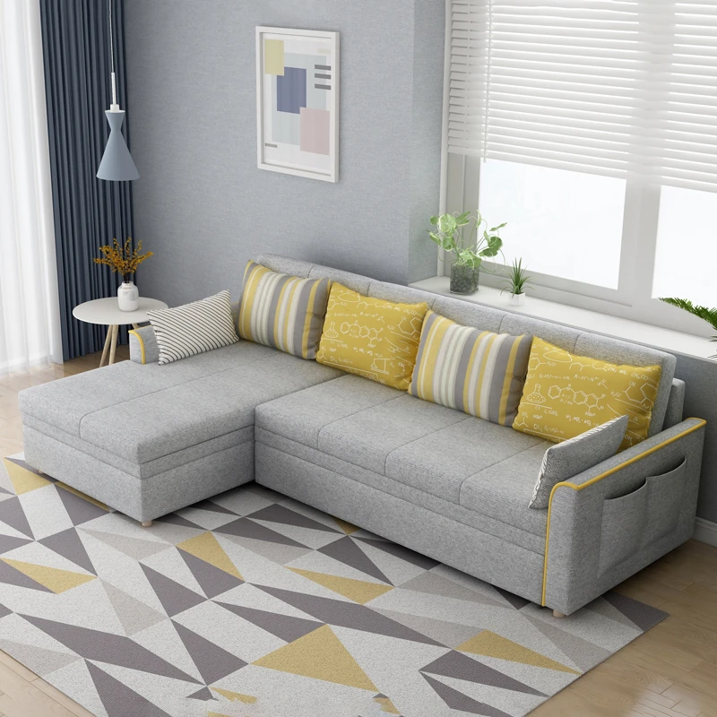Versatile Multifunctional Latex Storage Sofa Bed – Foldable Fabric Couch for Small Spaces with Corner Chaise Lounge Combo, Easy Assembly