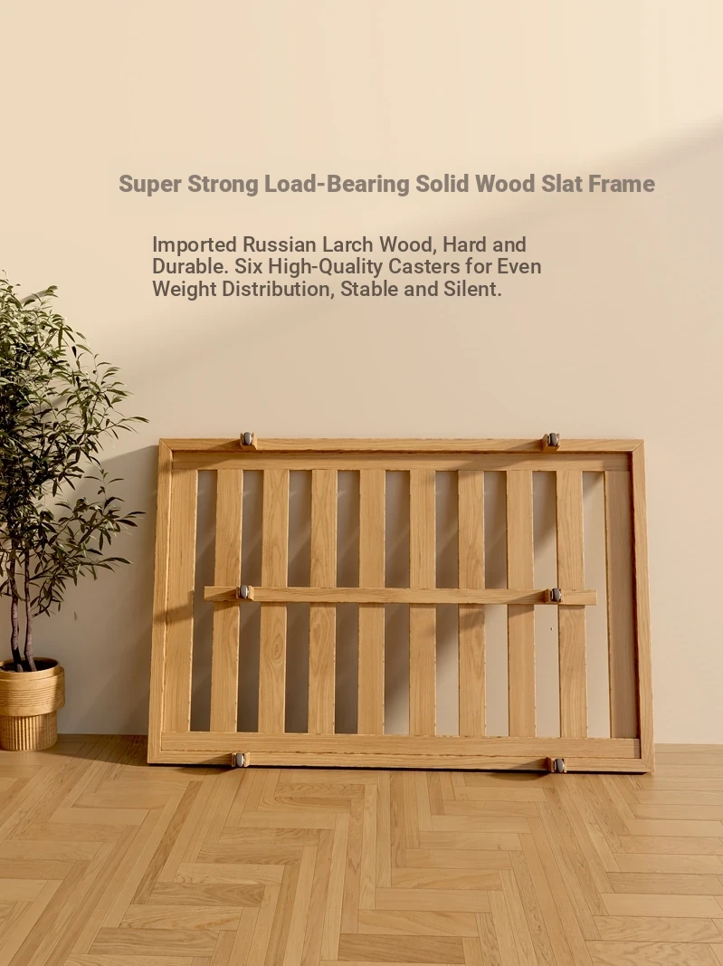 "Versatile Foldable Solid Wood Sofa Bed: Perfect for Small Spaces, Creamy Aesthetic for Trendy Bedrooms and Living Rooms, Dual Function with Ample Storage"