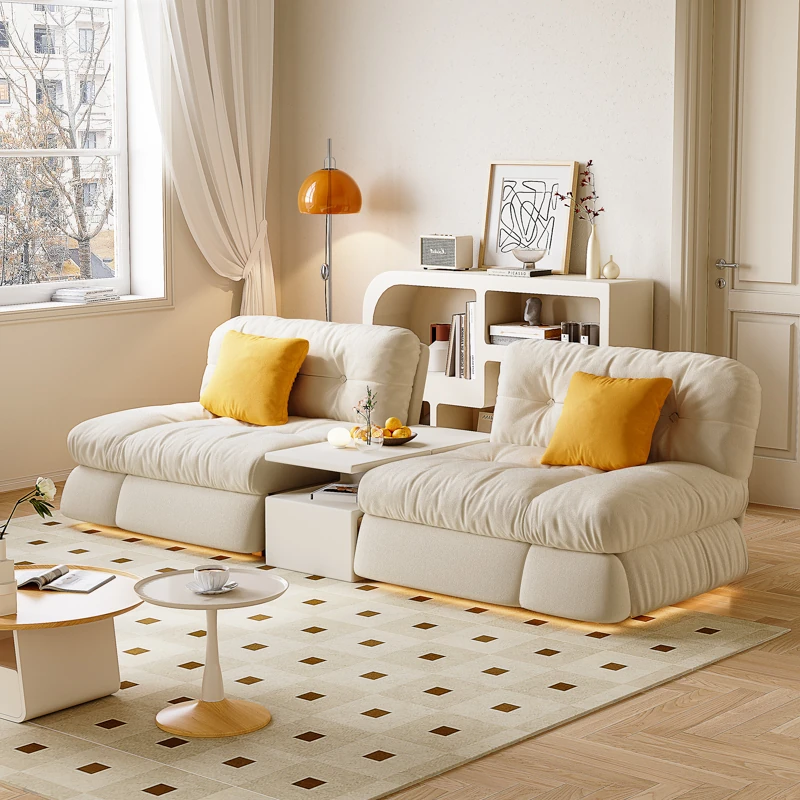 Lightweight French Cream-Style Electric Sofa in Lambswool Fabric – Multifunctional and Space-Saving for Modern Living Rooms – Elegant and Simple Design for Three People