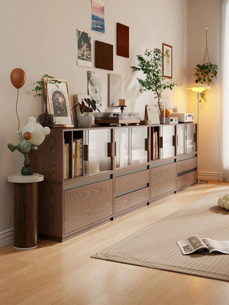 Modular Combination Low Storage Cabinet - Stylish Solid Wood Display and Bookcase with Glass Doors for Living Room and Home Organizing, Perfect for Any Space!