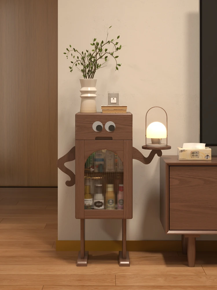 Shangxin Solid Wood Nightstand - Creative Children's Bedside Cabinet with Lamp, Tall Storage Unit for Bedroom and Living Room