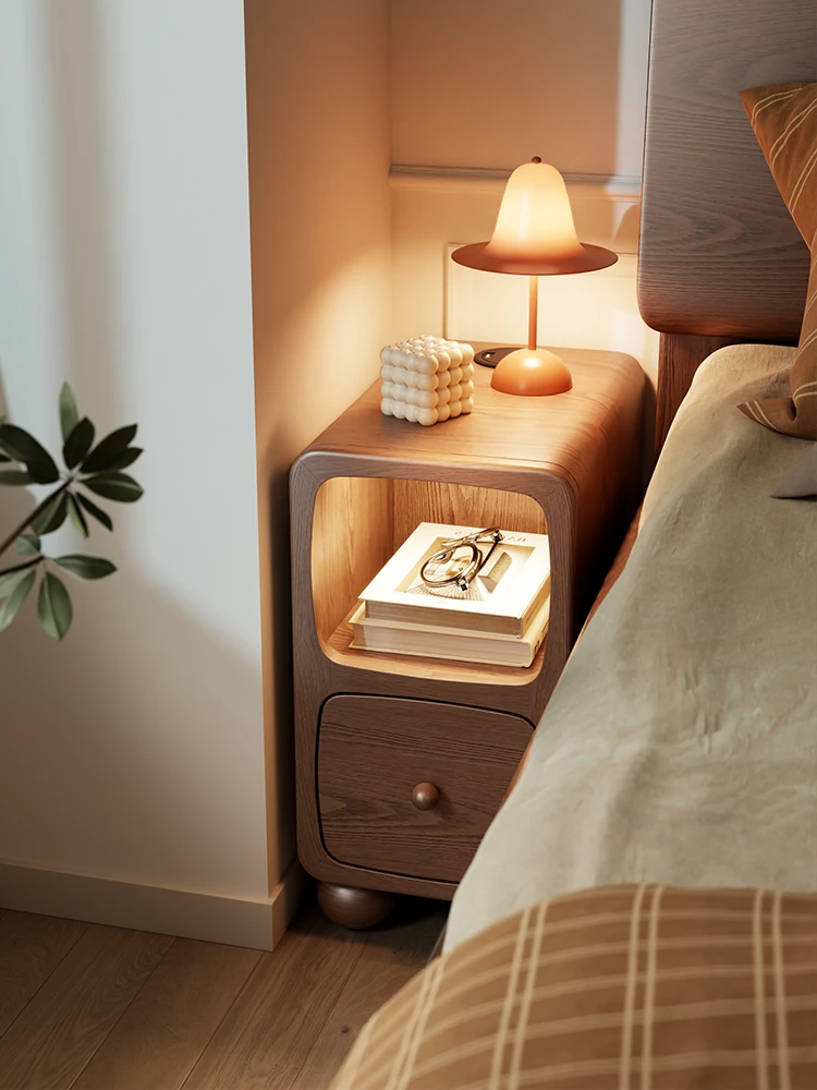 "Compact Solid Wood Bedside Table with LED Light - Ultra-Slim 25cm/30cm Mini Nightstand Perfect for Small Spaces"