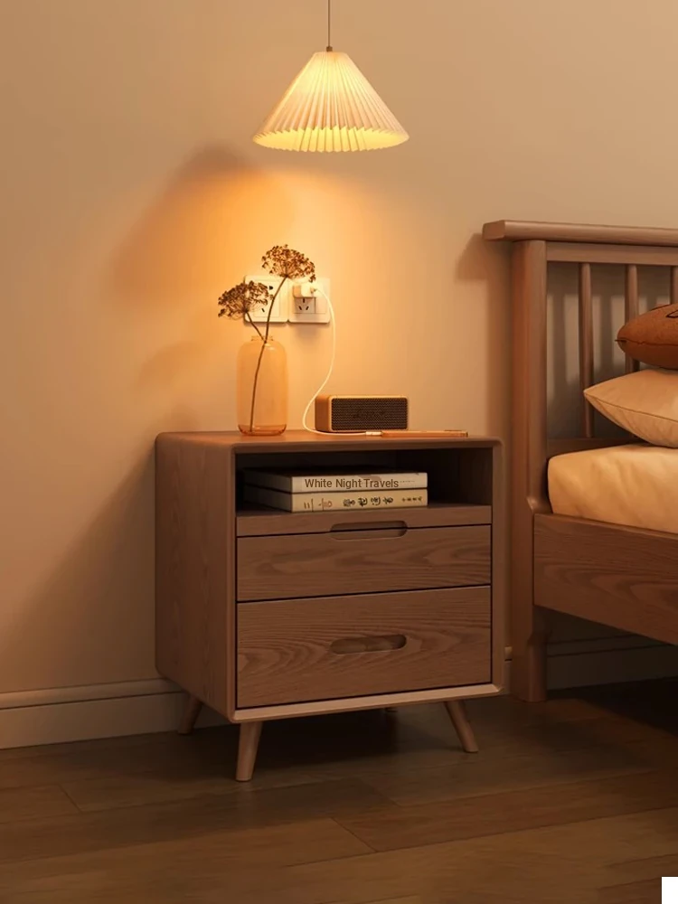 "Elegant Solid Wood Nightstand - Chic Minimalist Small Storage Cabinet for Bedroom, Modern Bedside Organizer and Display Shelf, Perfect for Home Use"