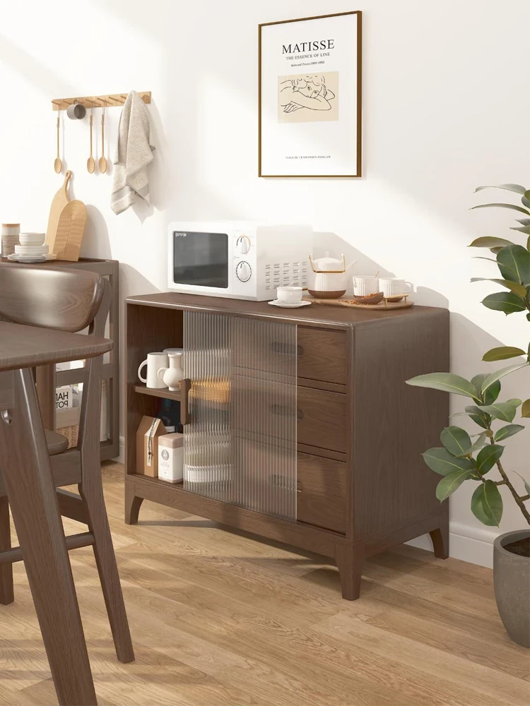 Modern Minimalist Solid Wood Sideboard - Stylish Storage Cabinet for Living Room, Kitchen & Dining; Perfect for Organizing Tea, Dishes, and More!