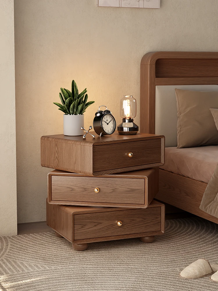 "Shangxing Pavilion 2024 New Rotatable Solid Wood Nightstand – Elegant Luxury Bedside Storage Cabinet for Bedroom, Combining Style and Functionality"