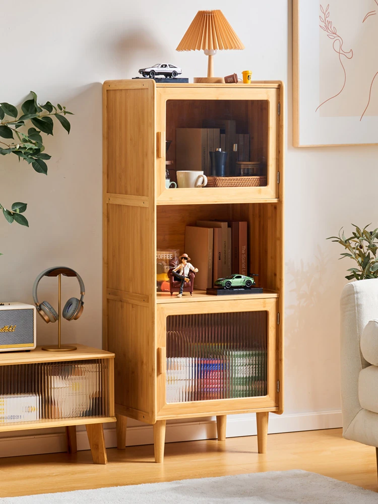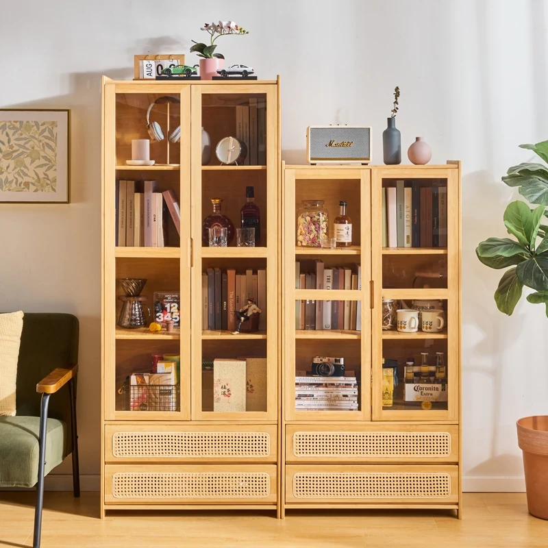 Modern Japanese Style Glass-Door Bookshelf - Minimalist Wooden Storage Shelf & TV Cabinet for Living Room - Elegant & Functional Furniture Piece for Your Home