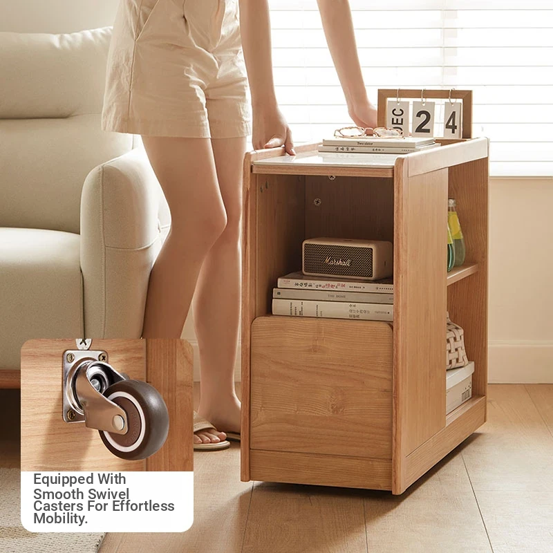 Elegant Modern Chinese Rolling Sofa Side Table – Versatile Tea Table, Compact Nightstand, and Easy-to-Use Narrow Storage Shelf for Home Décor
