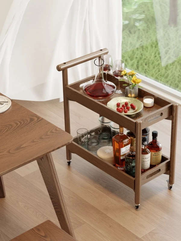 Enhance Your Space with Our Solid Wood Rolling Snack Trolley - Stylish Coffee Table, Sofa Side Cabinet, Living Room Dining Cart, Tea and Storage Rack, Perfect for Nightstands and More!