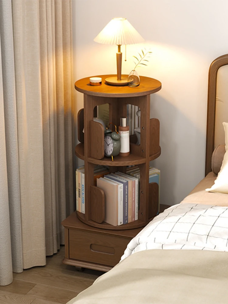 Rotating Bookshelf on Wheels – New Chinese-Style Mini Kids Bookcase, Nightstand & Bedside Storage Organizer for Bedroom
