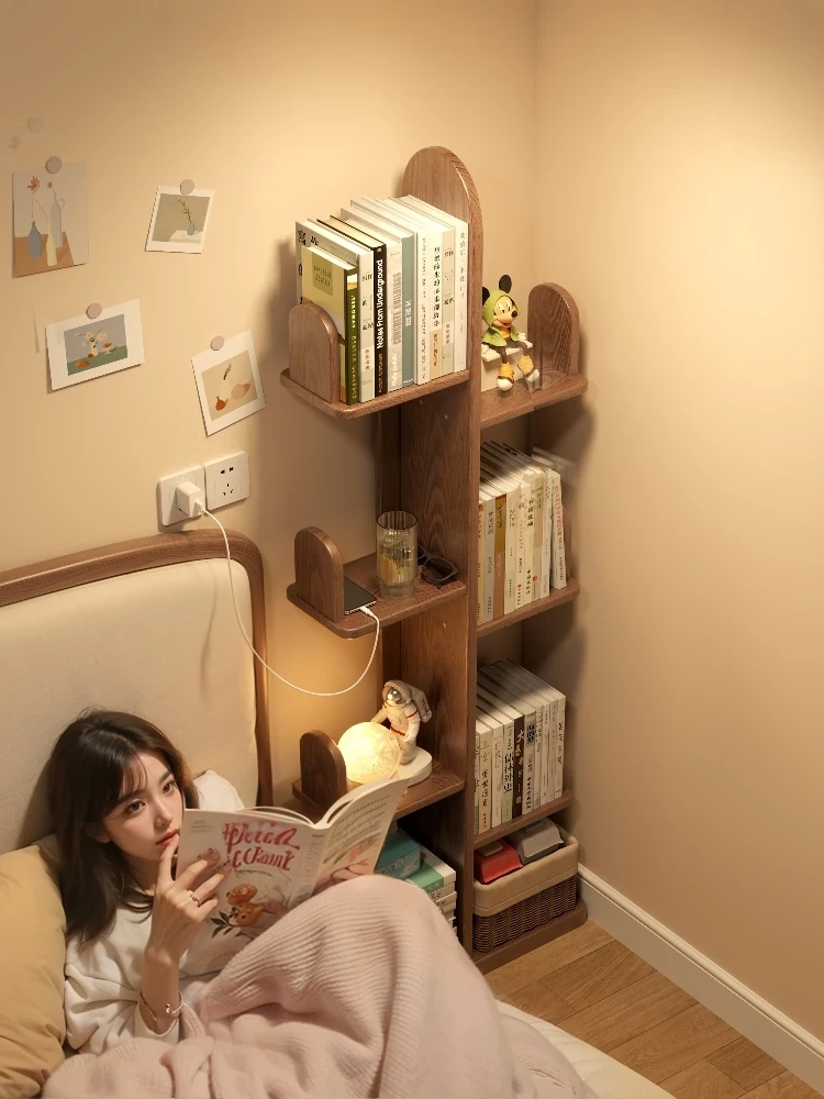 "Solid Wood Bedside Bookshelf with Cactus Design - Stylish Corner Storage Shelf for Bedroom, Floor-standing Organizer, Perfect Nightstand for Kids' Books"