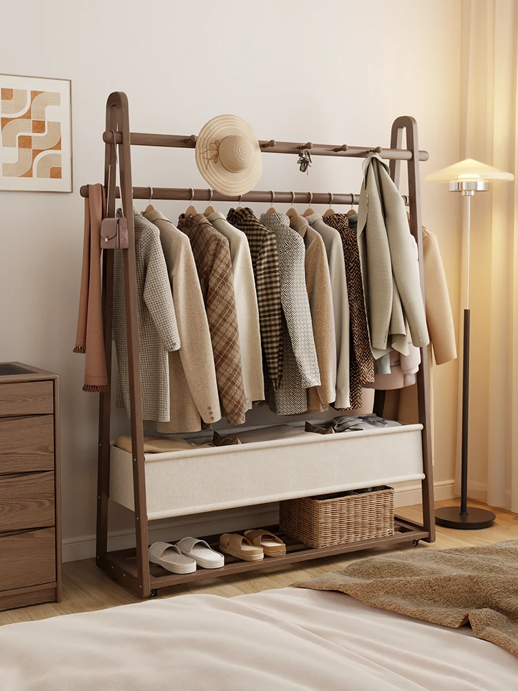 "Versatile Solid Wood Coat Rack & Laundry Stand – Mobile Indoor Drying Rack & Storage Solution for Overnight Clothes – Perfect for Bedroom Organization"