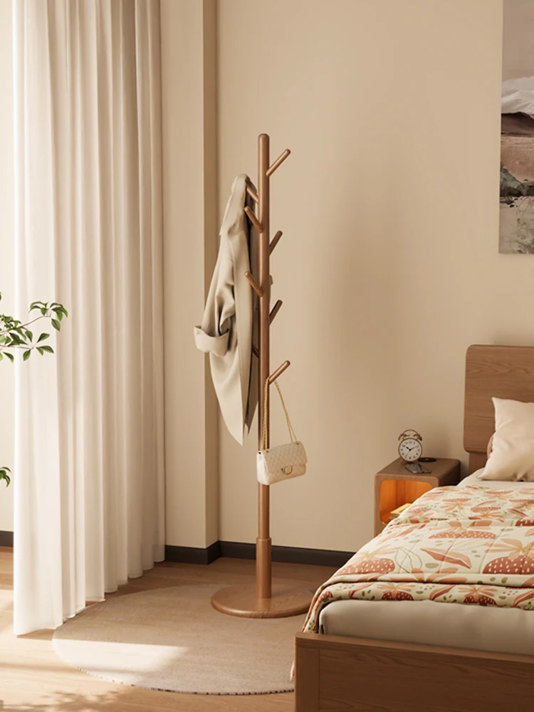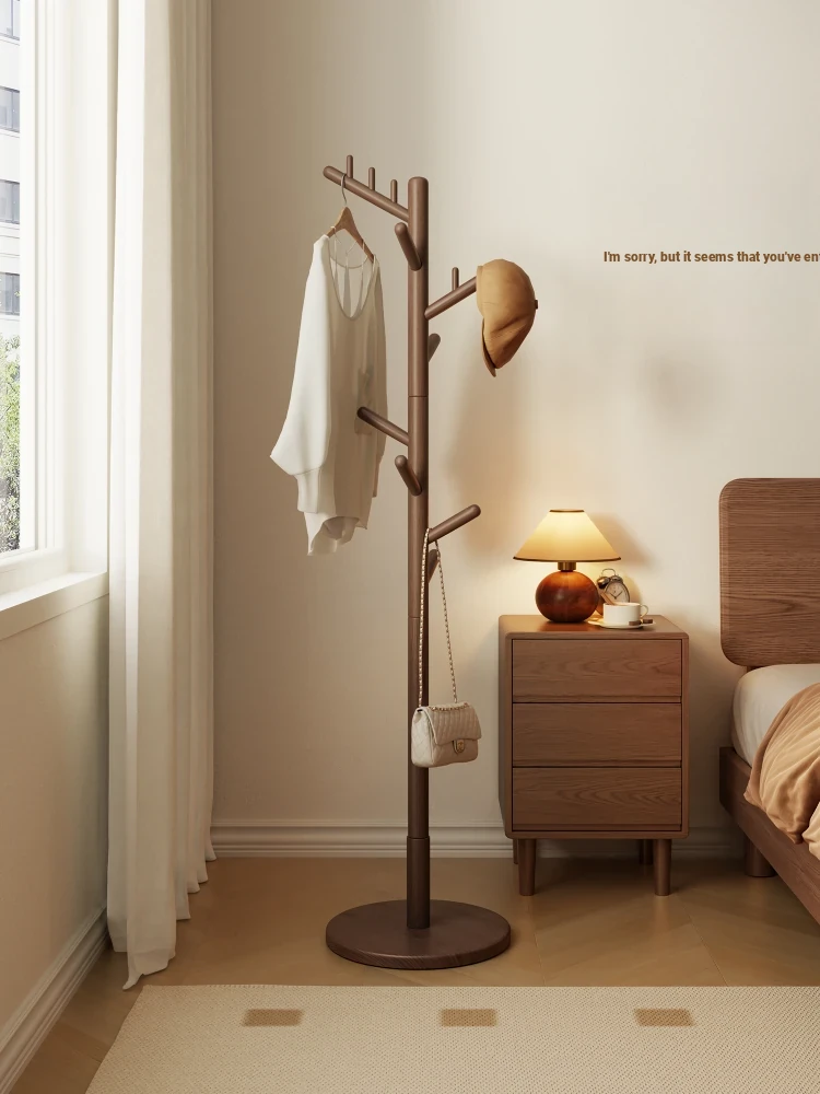Solid Wood Free Standing Coat Rack - Modern Minimalist Design for Bedroom and Home Use, Stylish Vertical Hanger for Clothes and Bags, Perfect for Organizing Your Space!