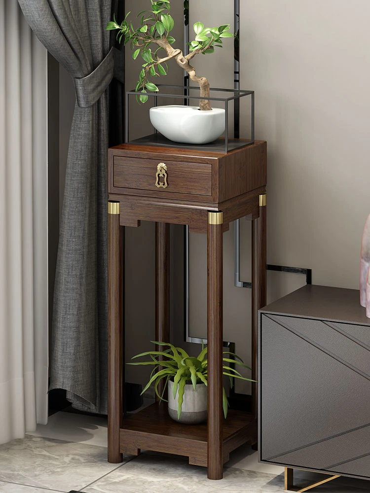 Elegant New Chinese Style Solid Wood Bamboo Flower Stand - Floor-Standing Storage Rack for Living Room, Simple Flower Display Table, Plant Holder, and Decorative Shelf for Pots and Flowers.