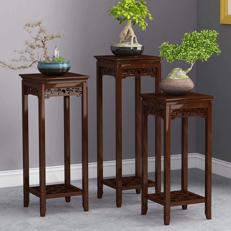 Indoor Chinese-Style Wooden Flower Stand - Elegant Floor Plant Shelf for Living Room and Balcony, Vintage Design Display Rack for Potted Plants, Perfect for Home Decor