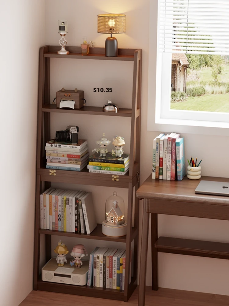 Solid Wood Folding Bookshelf - Space-Saving Wall-Mounted Storage Cabinet with Ladder Design, Perfect for Bedrooms, Nightstands, Corner Spaces, and Kids’ Rooms - Stylish Floor Storage Rack