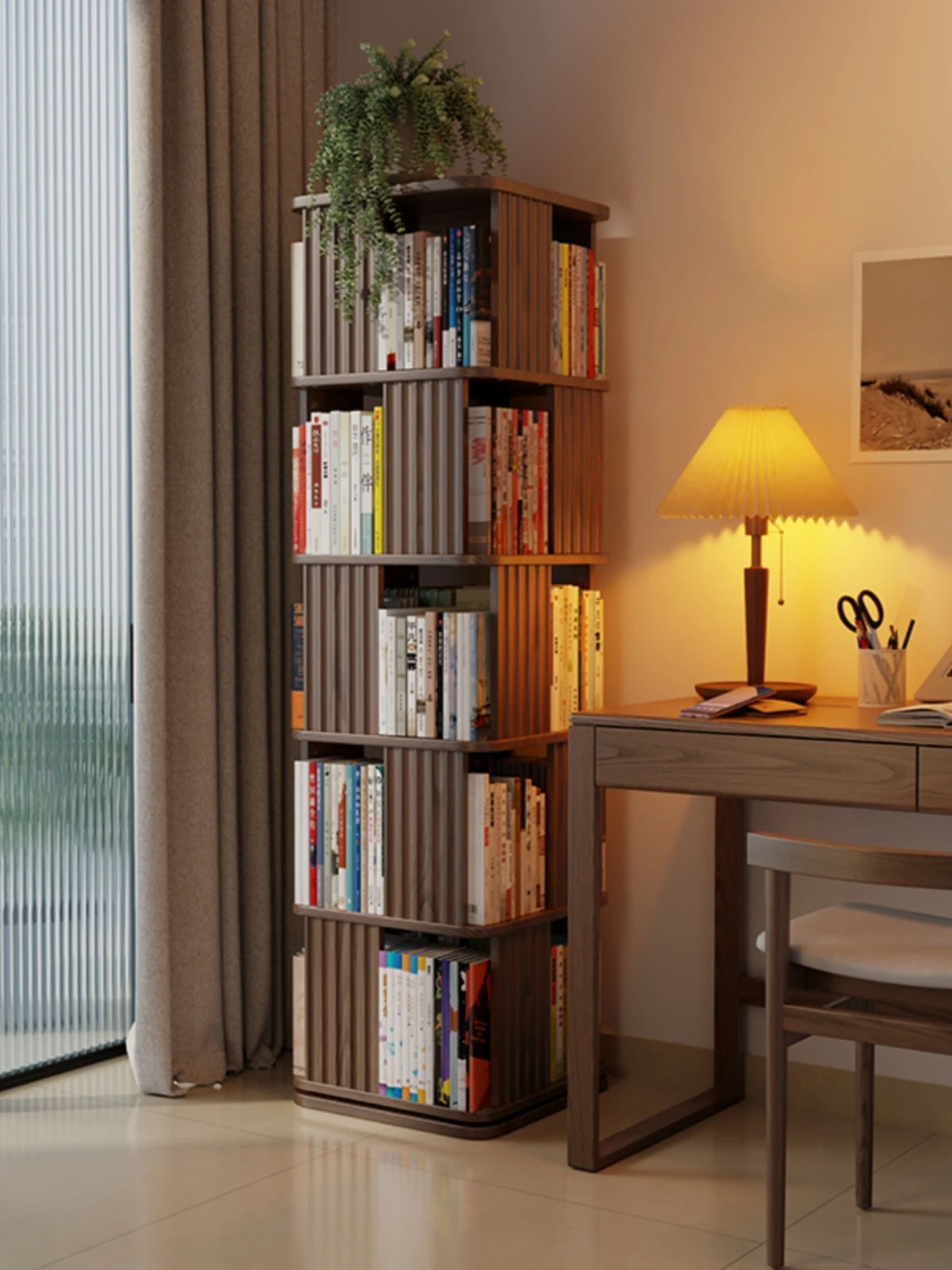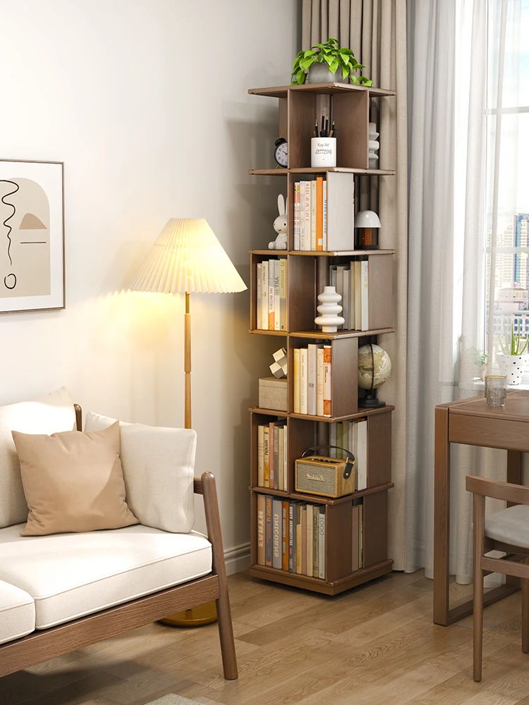 尚馨阁 Solid Wood 360° Rotating Bookshelf - Kids' Floor Storage Rack for Living Room, Home Organization and Display. Perfect for Stylish Home Decor!