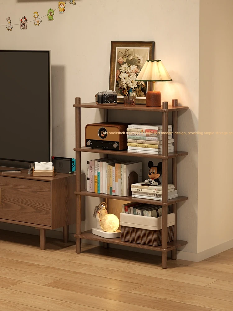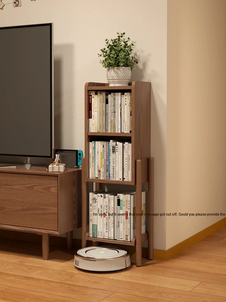 "Shangxing Solid Wood Bookshelf - Corner Anti-Tipping Freestanding Narrow Storage Rack, Invisible Vertical Design for Living Room, Ideal Home Bookcase"