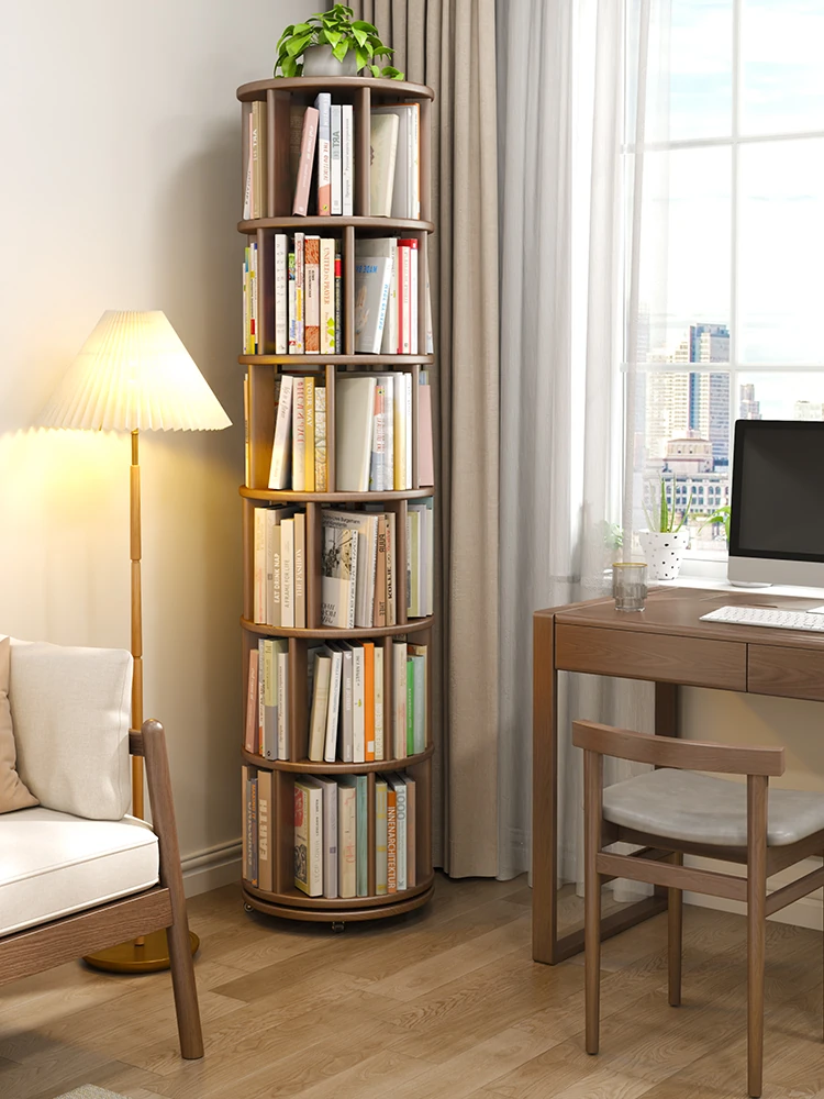 360-Degree Rotating Solid Wood Bookshelf – Mobile and Easy Storage for Kids, Living Room & Home Organization, Freestanding Book Rack