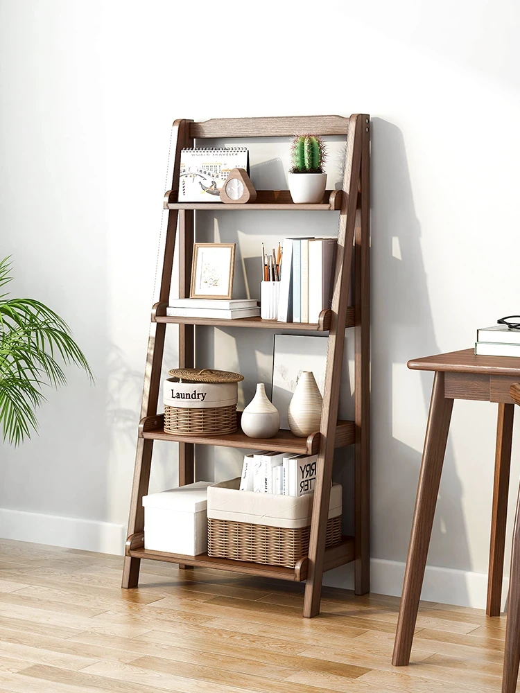 Shangxing Solid Wood Corner Floor Bookshelf – Adjustable & Space-Saving Wall-Mounted Bookcase for Bedrooms, Living Rooms, and Students – Stylish Ladder-Shaped Storage Rack