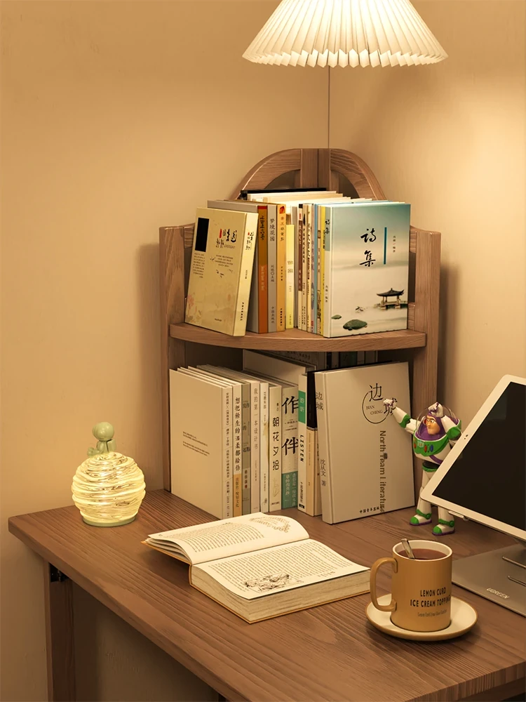 Elegant Solid Wood Corner Bookshelf - Multi-Layer Storage Rack for Bedroom and Living Room - Stylish Desktop Organizer Perfect for Corner Spaces