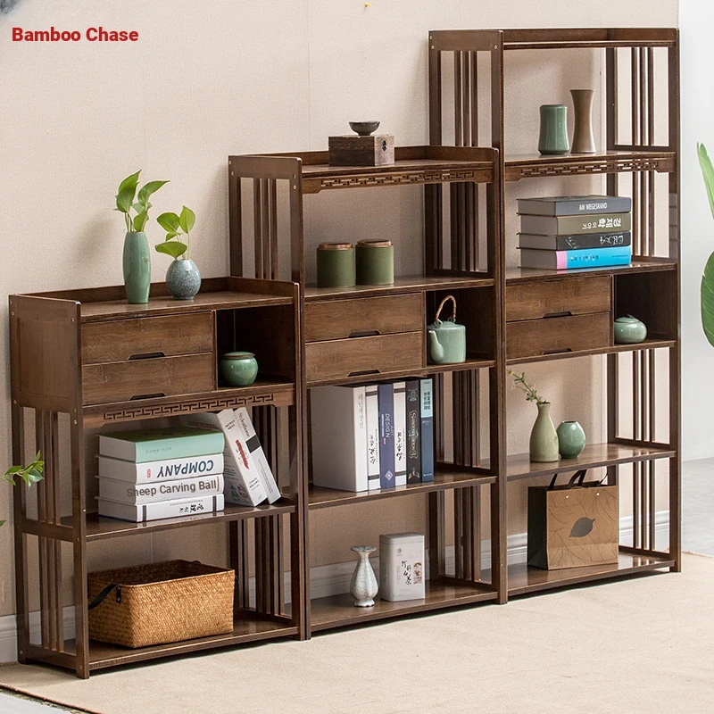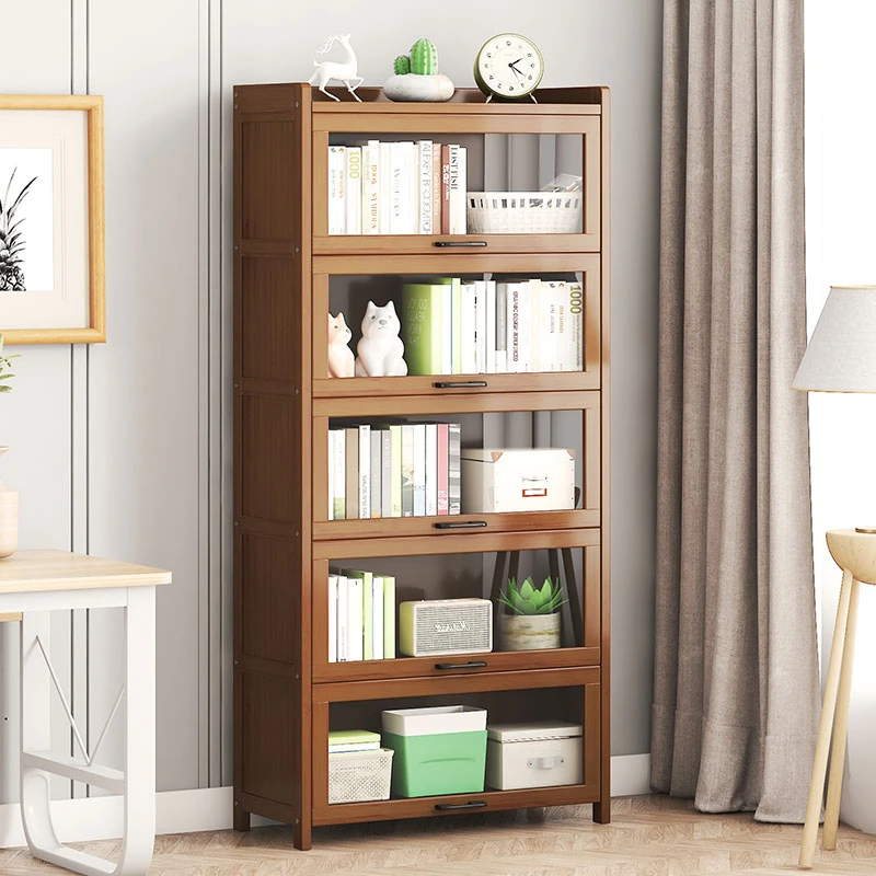 Solid Wood Bookshelf and Floor Storage Rack - Multi-Layer Dustproof Cabinets with Doors for Living Room and Home Use, Simple Design for Organization and Storage Solutions.