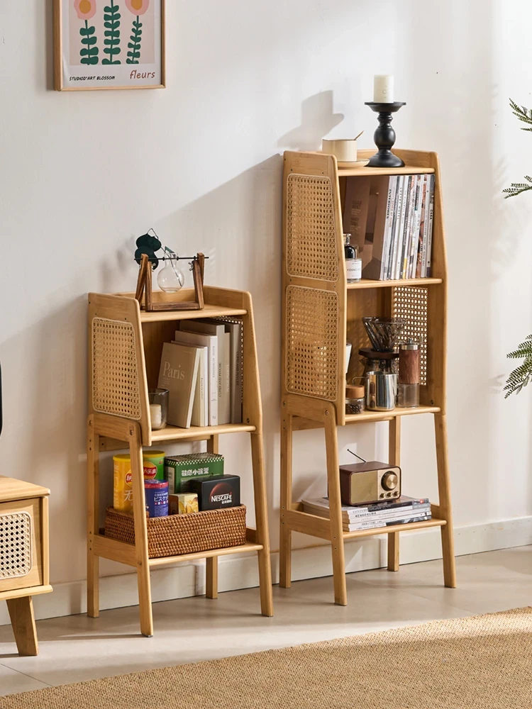 Compact Floor Bookshelf - Stylish Rattan Storage Cabinet for Organizing Books and Essentials - Perfect for Small Spaces and Home Offices - Versatile Narrow Unit Fits Effortlessly Next to Desks and Walls