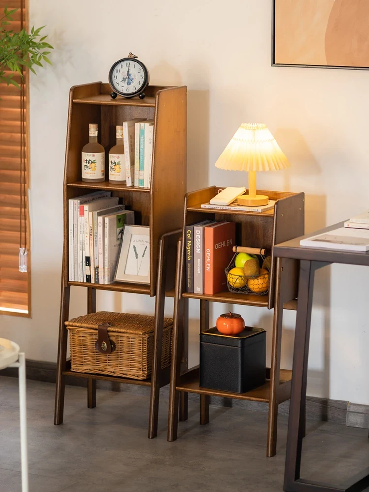 "Stylish Japanese-Style Floor Standing Bookshelf - Multi-Layer Storage Cabinet for Living Room, Space-Saving Small Bookcase, Wall-Mounted Organizer for Home Use"