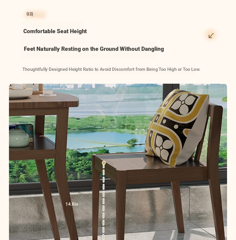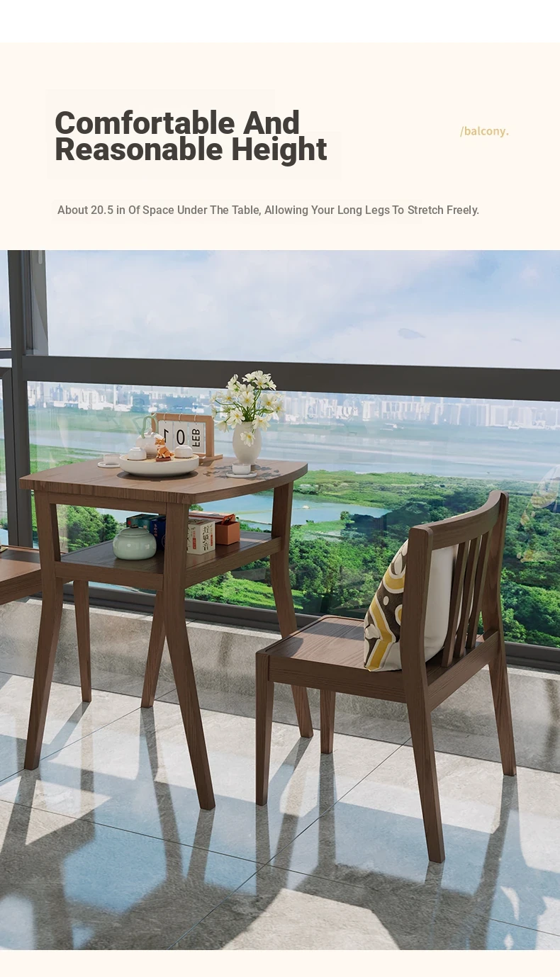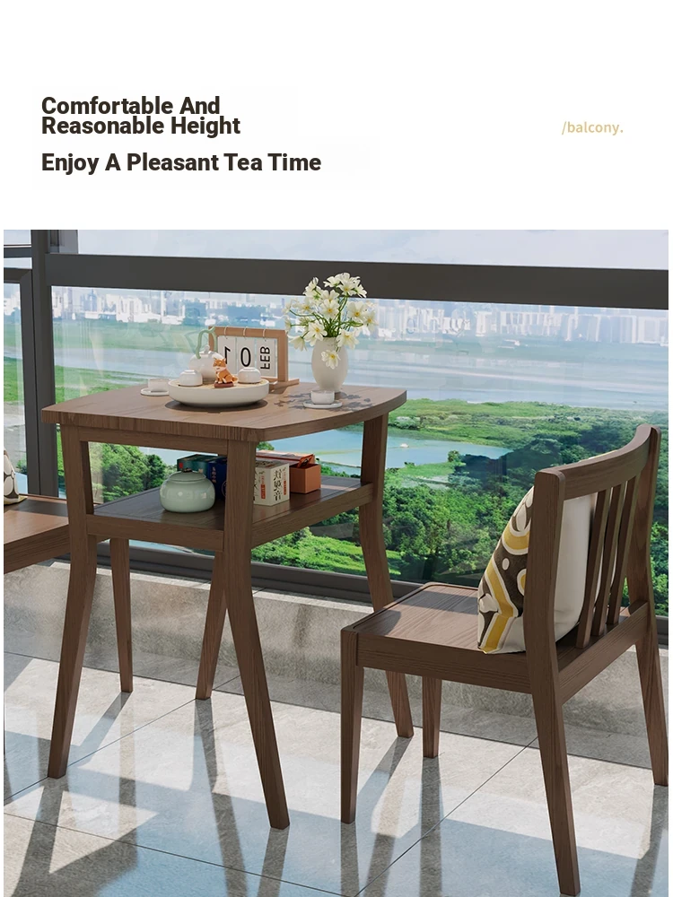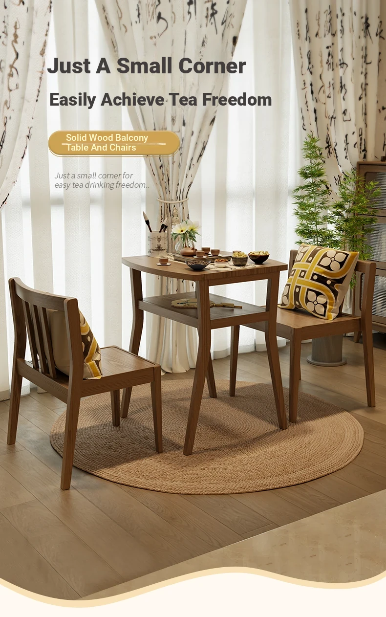 2024 New Stylish Balcony Tea Table Set - Trendy 3-Piece Solid Wood Combo with One Table and Two Chairs for Relaxation and Outdoor Enjoyment