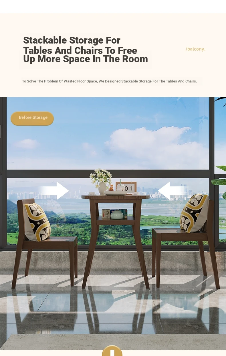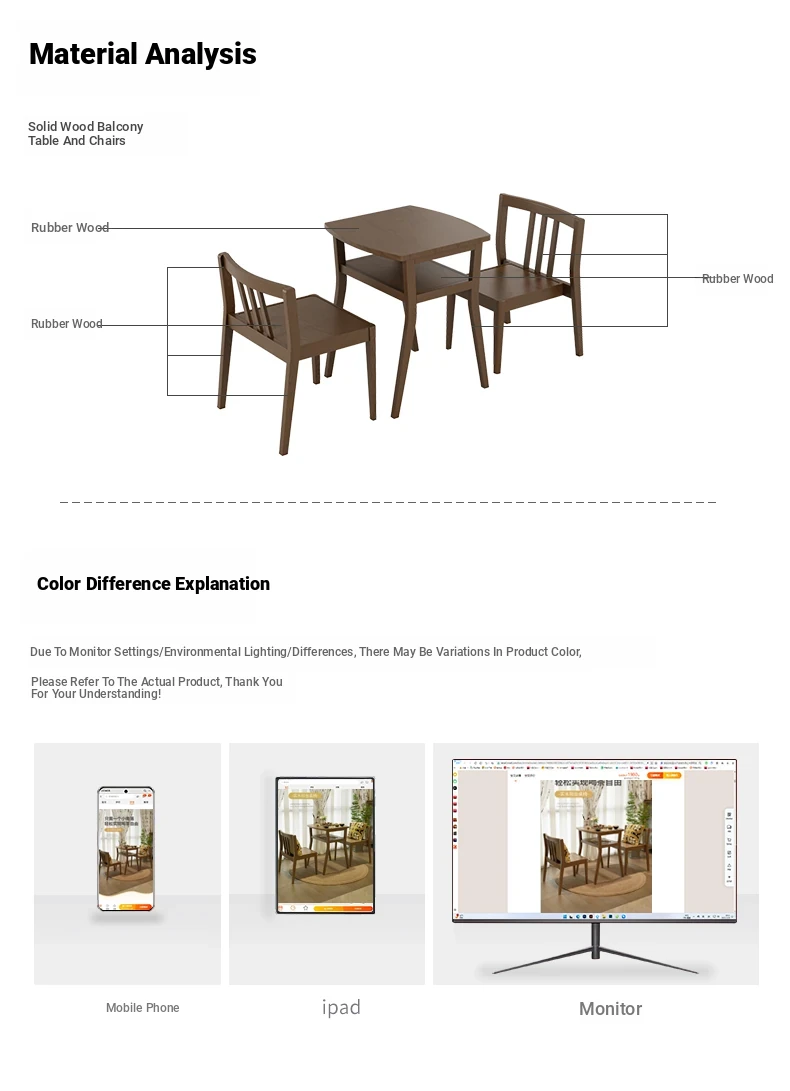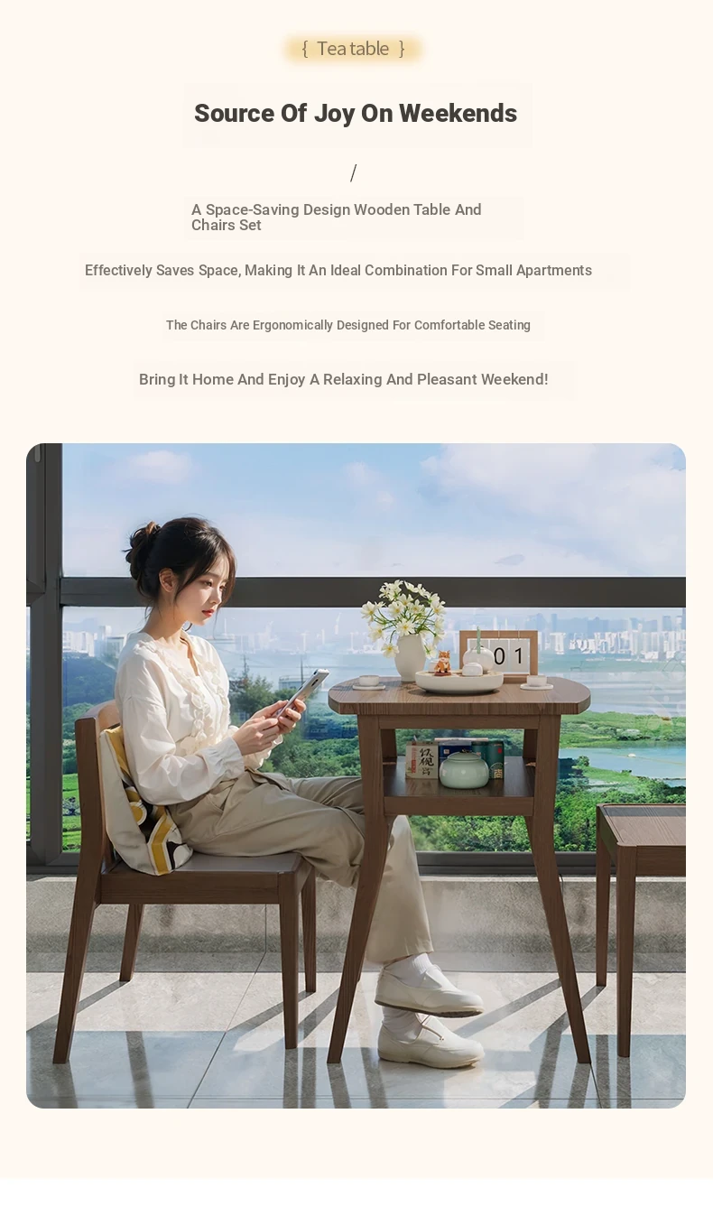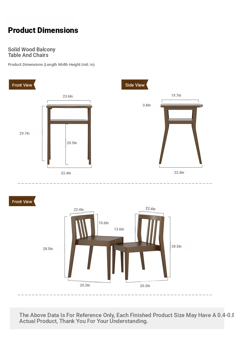 2024 New Stylish Balcony Tea Table Set - Trendy 3-Piece Solid Wood Combo with One Table and Two Chairs for Relaxation and Outdoor Enjoyment